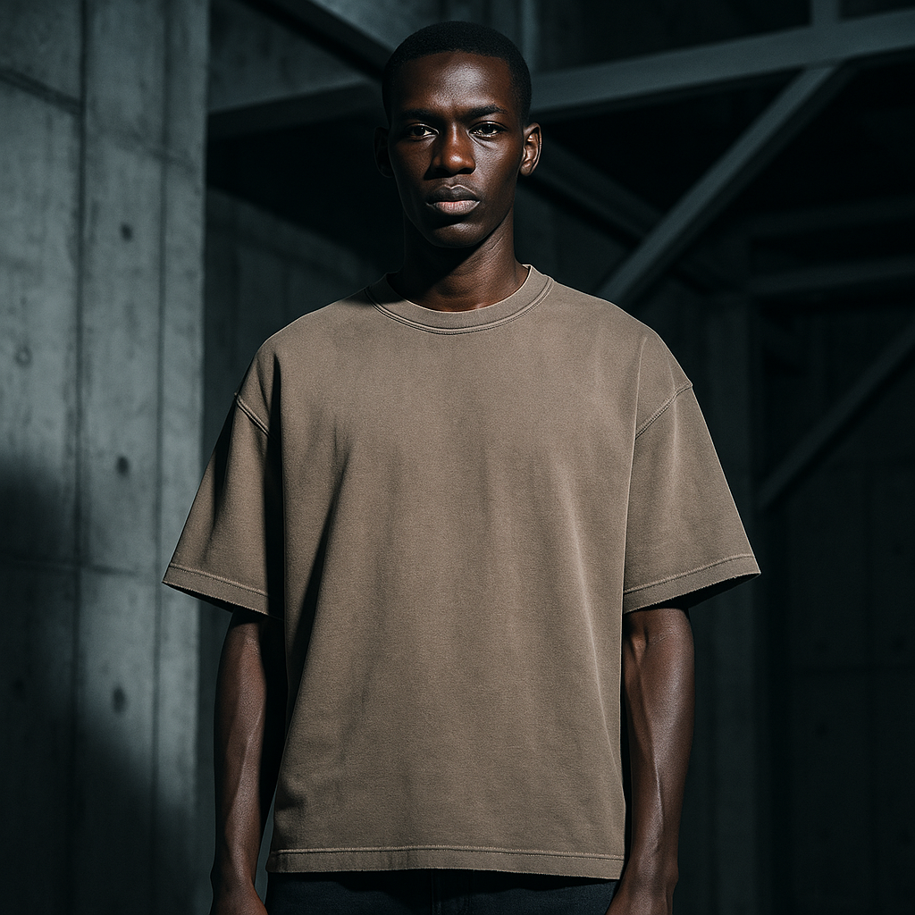 Example Product Copy: "Essential Oversized Tee - Charcoal Heavy-weight organic cotton. Vintage-washed for immediate comfort. Cut for a relaxed architectural silhouette. Built to improve with age."